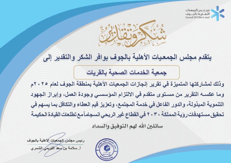 نتقدم بخالص الشكر والتقدير لـ مجلس الجمعيات الأهلية بمنطقة الجوف على هذا التكريم الكريم، والذي نعتز به كثيرًا، لمواصلة العمل…