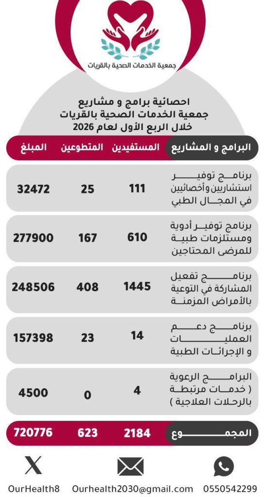 إحصائية البرامج والمشاريع خلال الربع الاول 2026